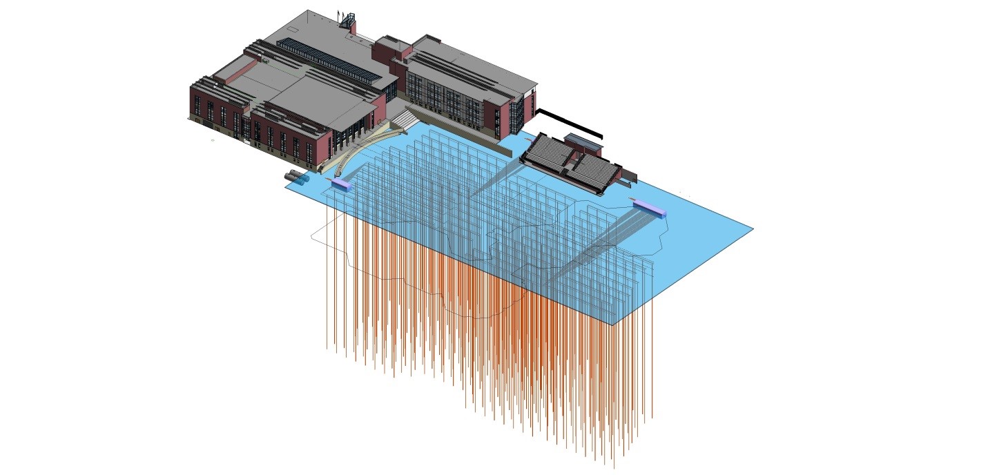Asimismo, el diseño integra el uso de energías renovables, como la geotérmica y la solar. El sistema geotérmico cuenta con 362 pozos verticales excavados hasta una profundidad de 500 pies, empleando más de 68 millas de tubería. También emplea calefacción por suelo radiante para mantener la comodidad de los estudiantes, además de paneles solares.