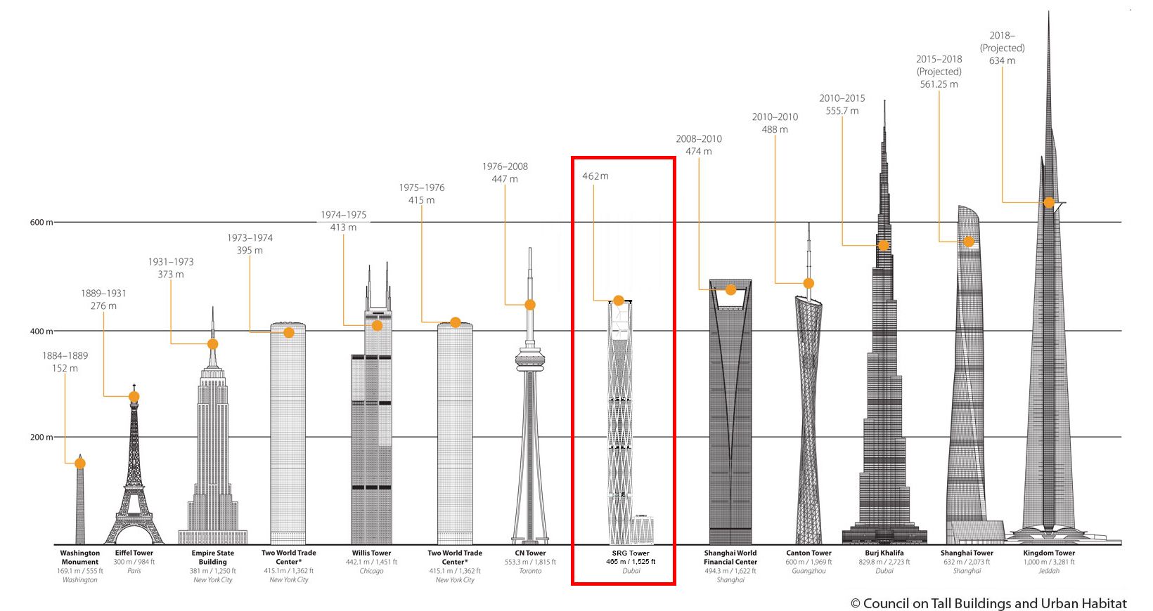 Esta torre residencial de lujo de más de 400 m de altura y 111 pisos con certificación LEED Platinum está ubicada en Dubái y actualmente se encuentra en proceso de construcción.